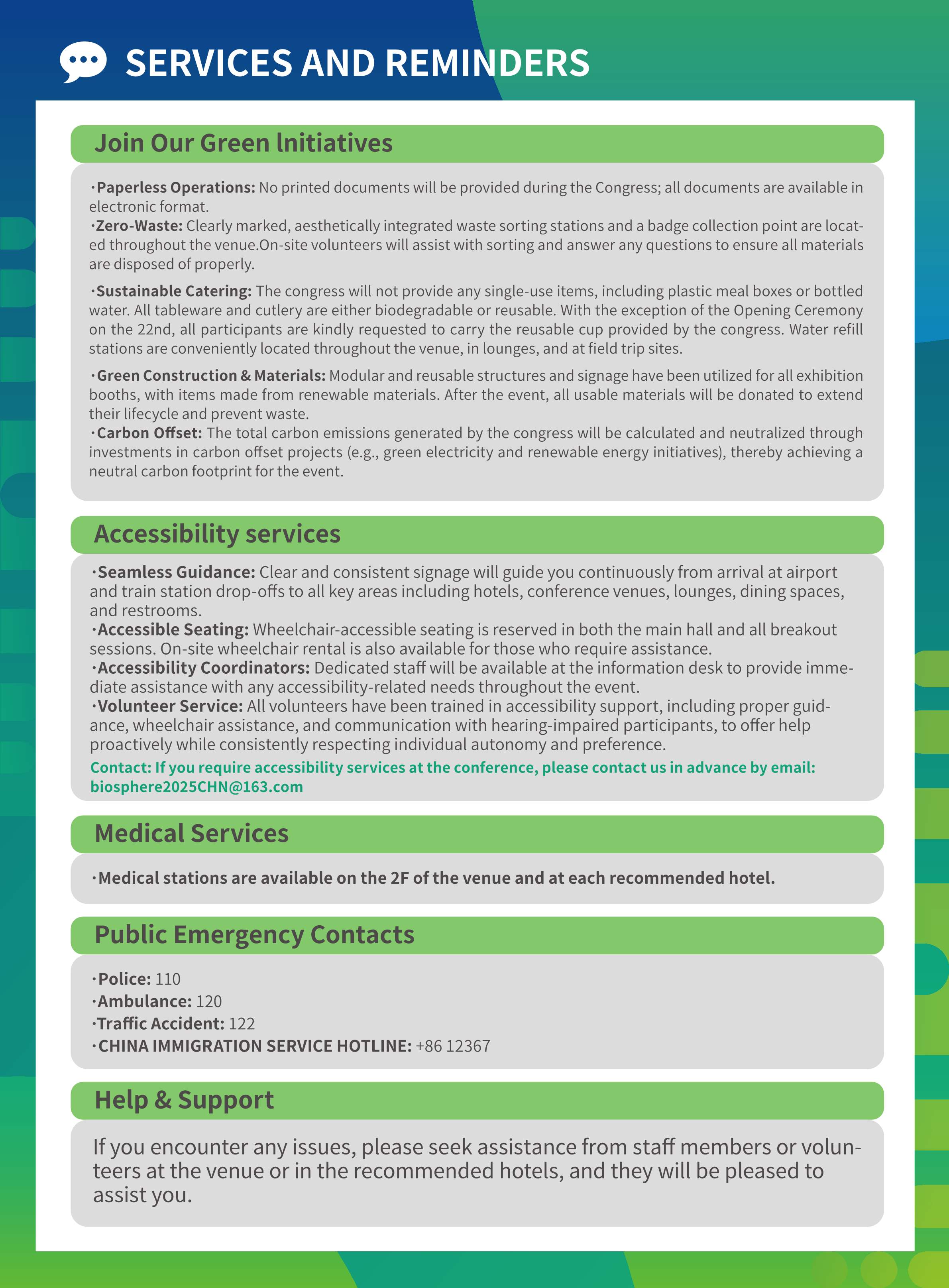 Medical facilities will be available at the venue for emergencies. Details on the location and hours of operation will be provided on the Congress website in due course.