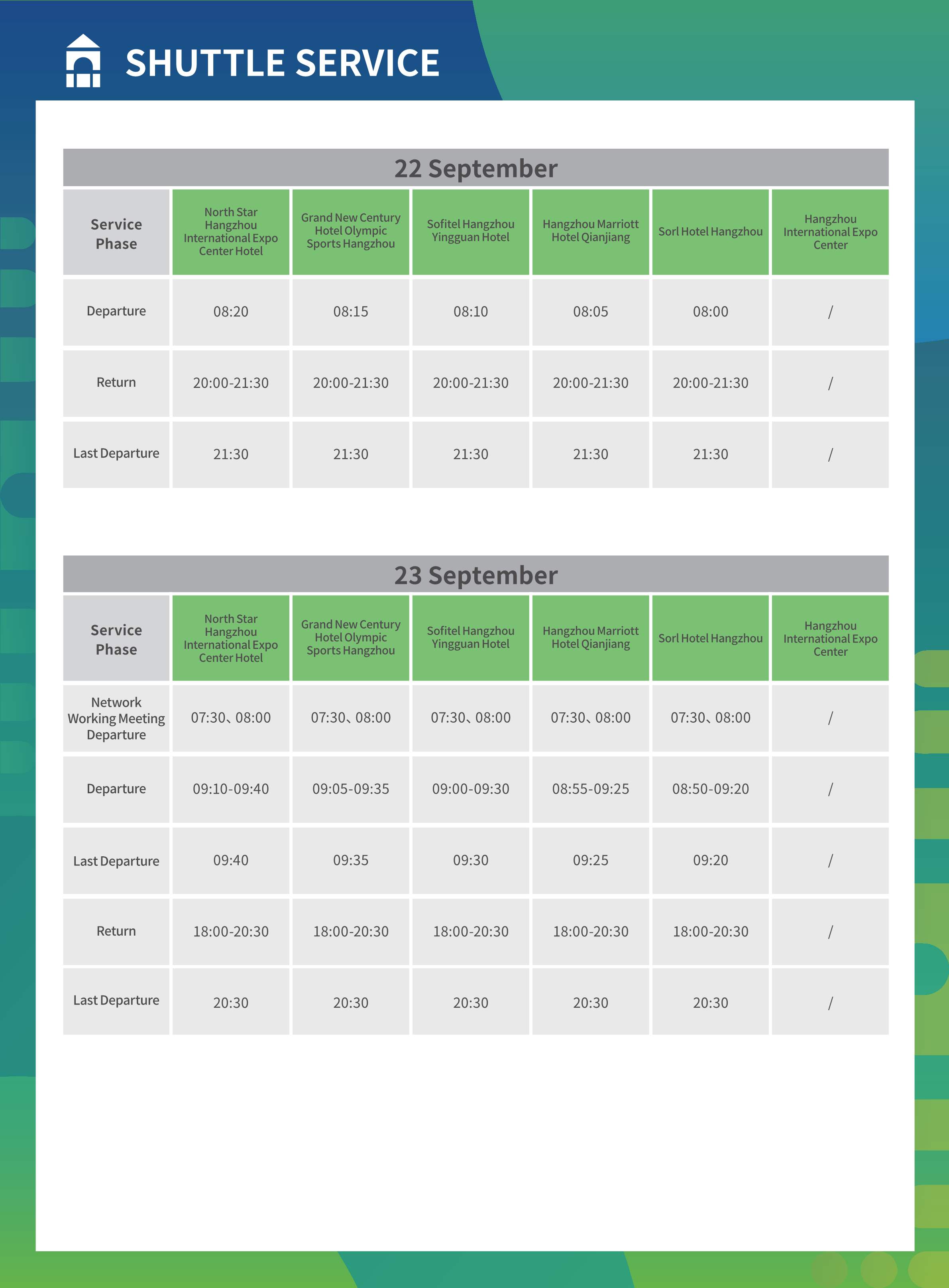 Shuttle Bus Departure Schedule from Congress Hotels to the Venue
