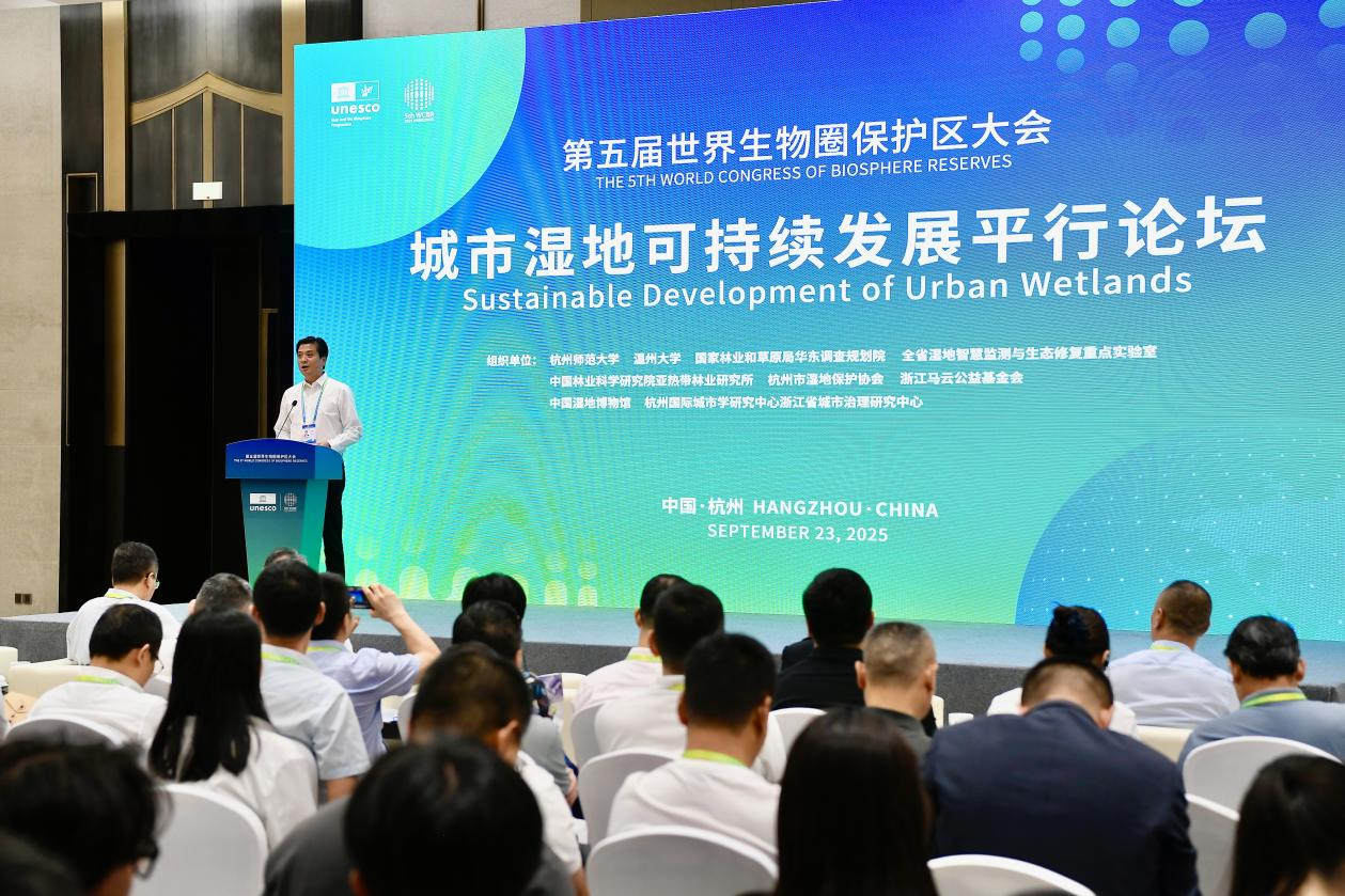 为搭建国际化的湿地保护与合作交流平台,深入探讨城市湿地保护的新思路和新方法,9月23日,第五届世界生物圈保护区大会“城市湿地可持续发展”平行论坛举行,来自世界各地的专家学者、政府代表、企业及公益组织齐聚一堂,围绕城市湿地保护与可持续利用展开深入交流,为促进人与自然和谐共生贡献智慧与方案。