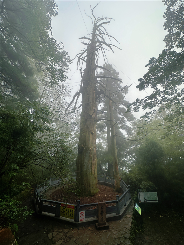 这里以“大树华盖”闻名于世,拥有世界上规模最大的柳杉群落,记者走一段便能看到一株柳杉,更为震撼的是,这里千年柳杉有580余株、500年以上的有820余株,其中“大树王”柳杉大约有2000多岁,胸径2.33米,要五六个人才能合抱过来。